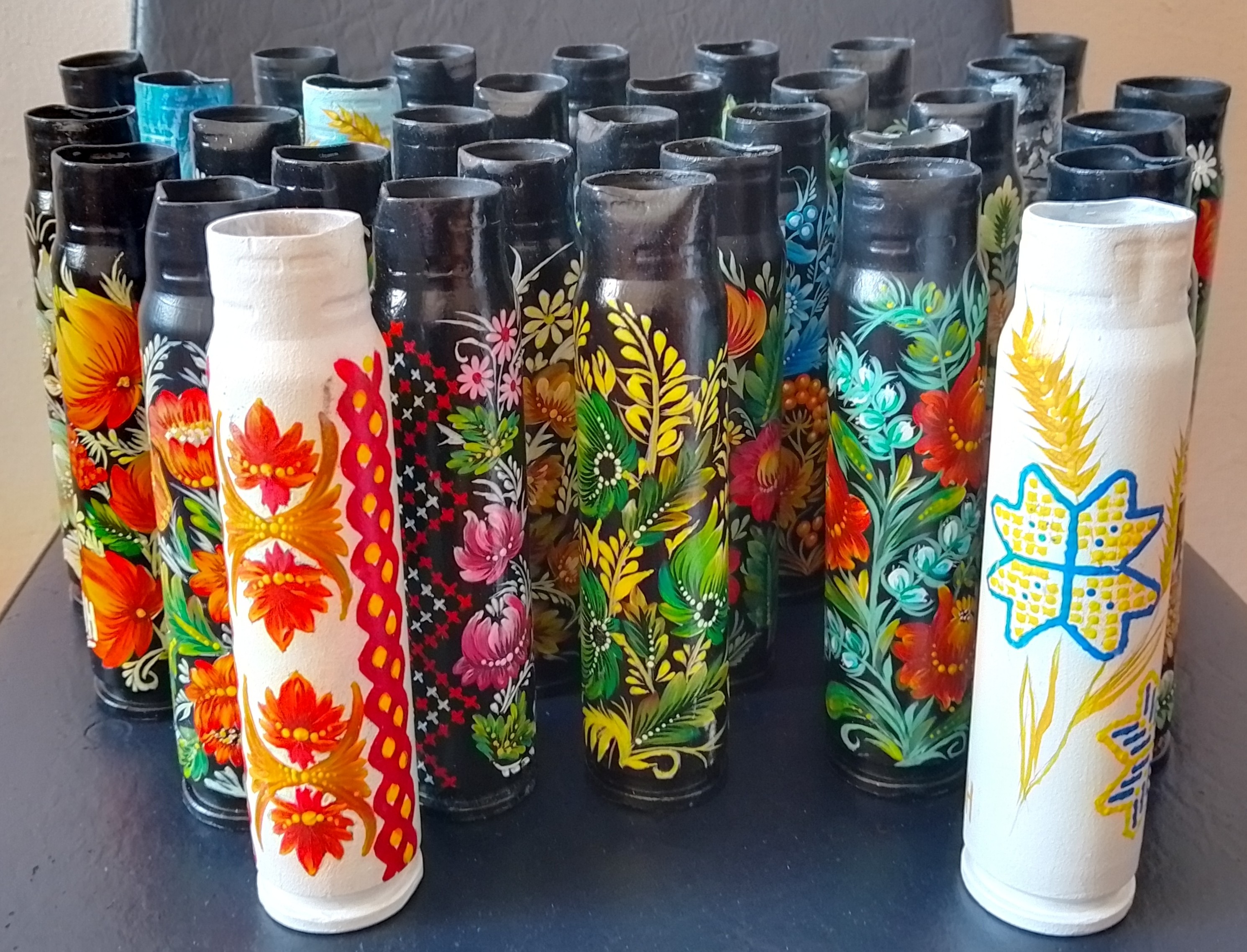Магічне перетворення смертоносного заліза на витвір мистецтва здійснила Валентина Поліщук – мати захисника України, художниця за фахом та волонтерка за покликанням. Родом із села Станіславчик на Київщині, пані Валентина все життя сумлінно працювала для людей: від художника-оформлювача до секретаря сільради. Сьогодні вона на пенсії, але її енергія спрямована на головне – моральну підтримку українських воїнів.