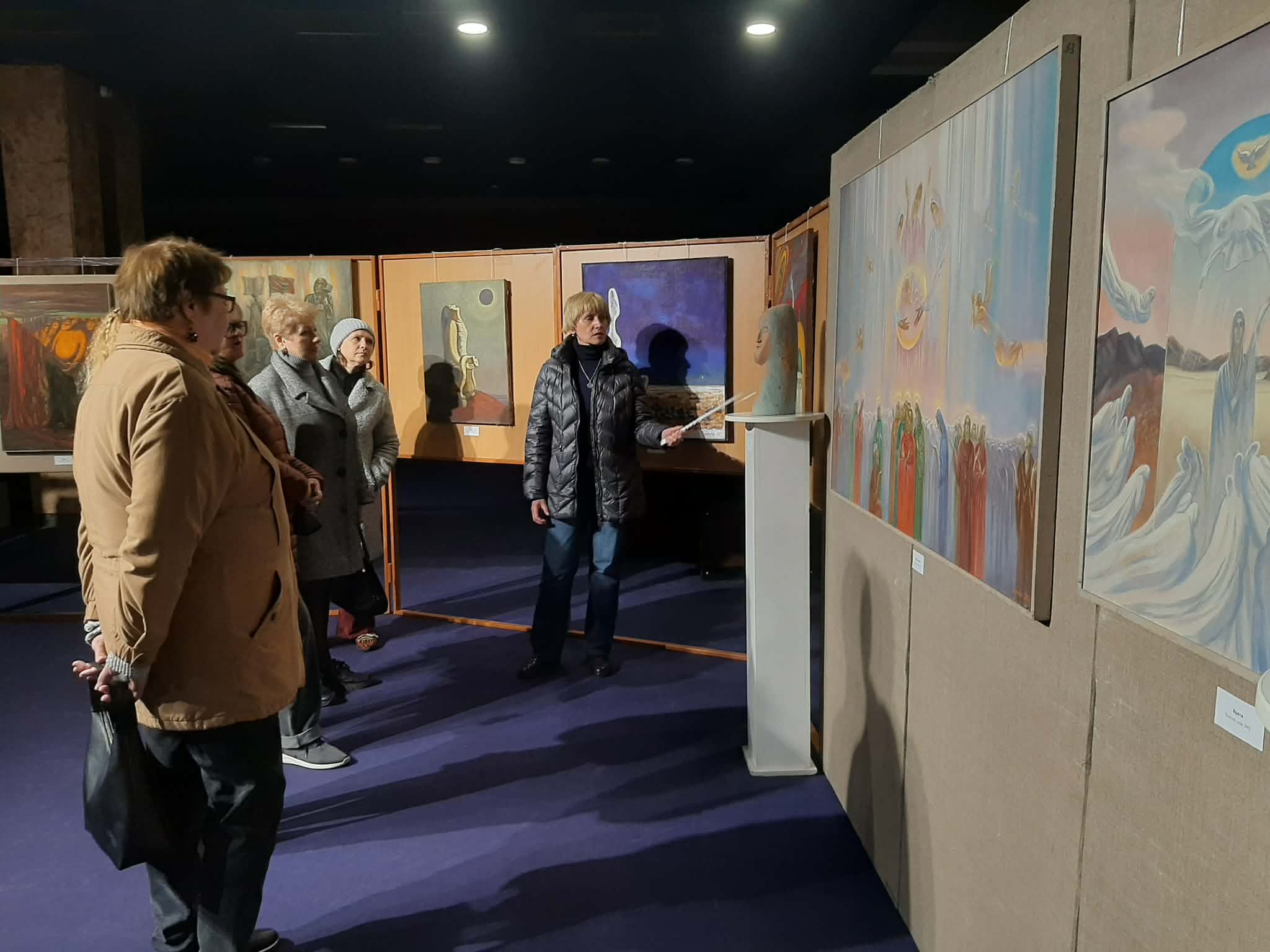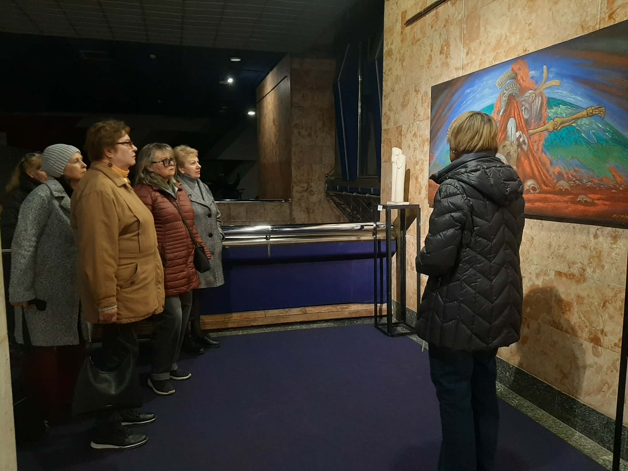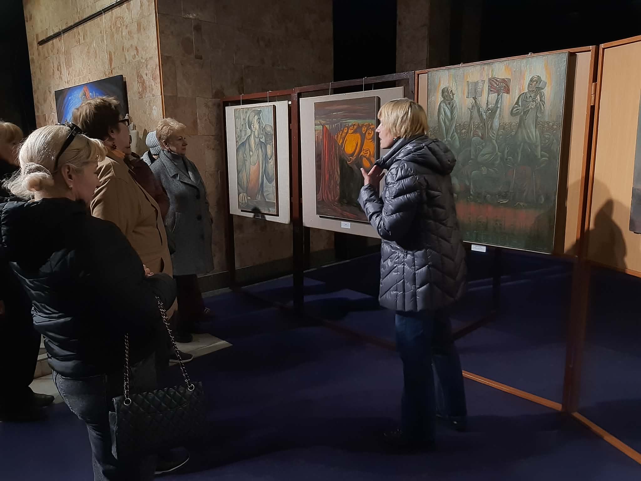 Під час огляду експозиції відвідувачам представили як скульптурні роботи автора, так і живописні полотна, виконані у різних техніках. Учасники зустрічі дізналися про творчий шлях Михайла Мігріна, тематику його робіт та ідеї, які він втілює у своїх композиціях. Значна частина творів відображає філософські роздуми про людину, історичну пам’ять, духовні цінності та сучасні суспільні процеси. Скульптури митця вирізняються пластичністю форм, символічністю образів і глибоким емоційним наповненням, тоді як живописні роботи привертають увагу кольоровими рішеннями та авторською манерою виконання.